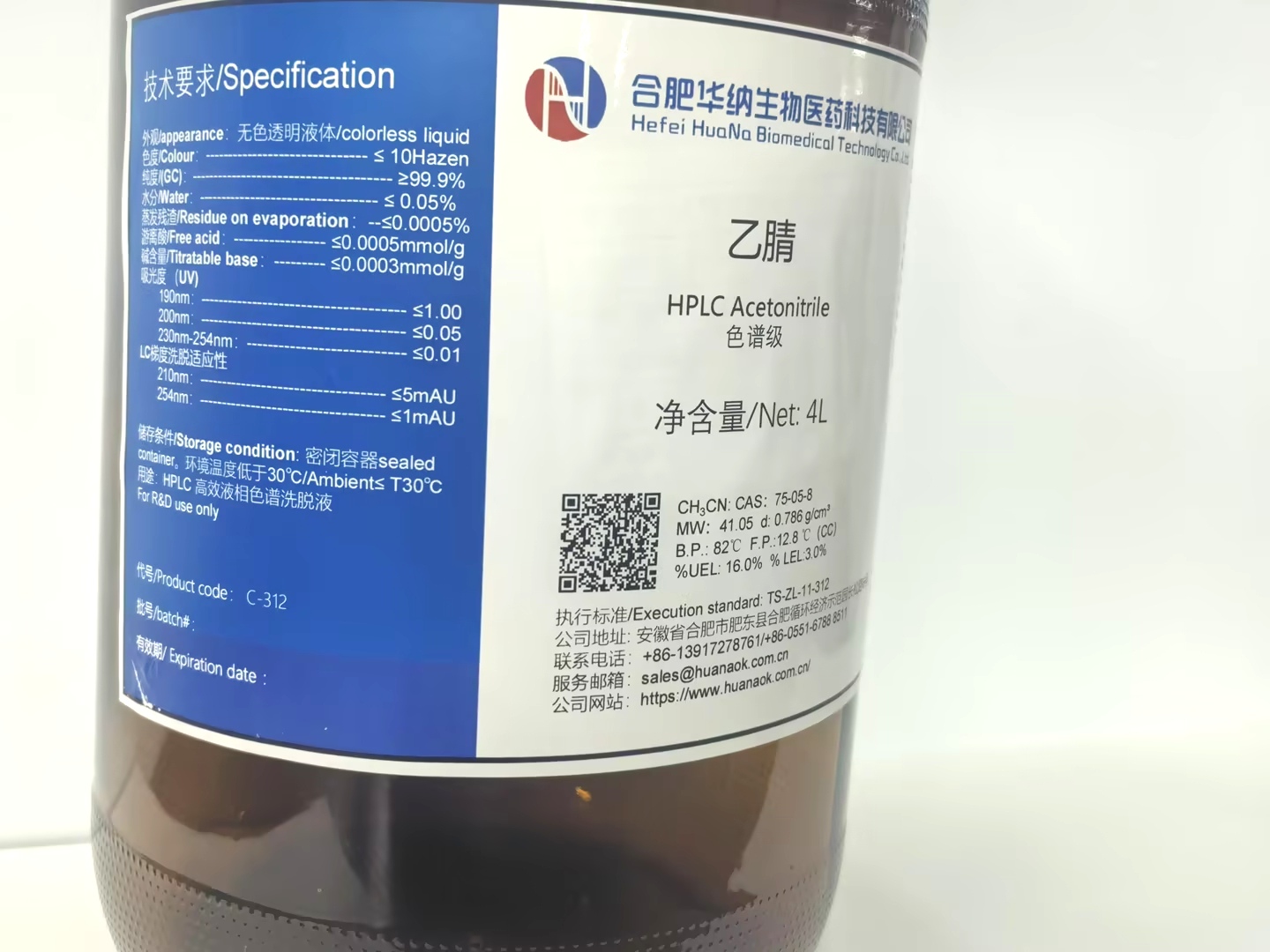 水分指標(biāo):≤0.05%  組分:乙腈(色譜級)